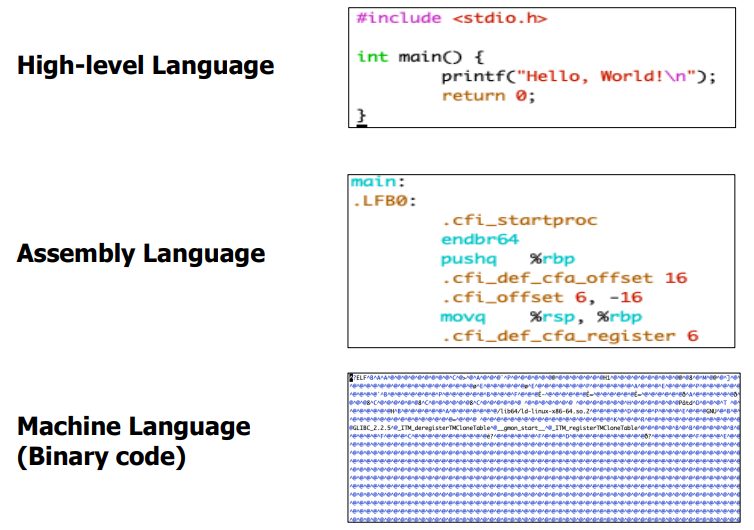번역 시스템의 concept은 언어 계층 구조로, high-level 언어를 기계어로 바꿔주는 시스템이다.