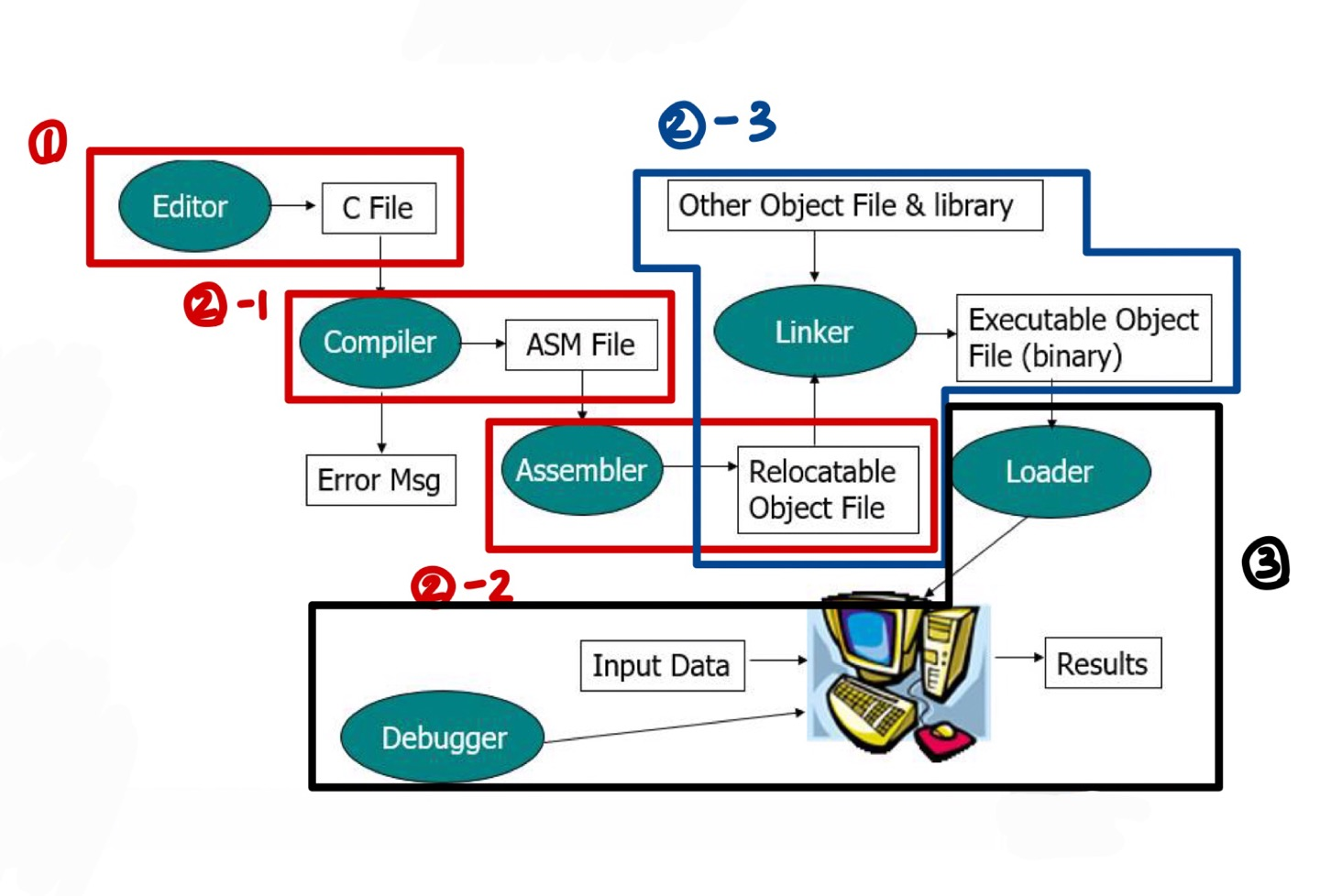 - ASM File : 어셈블리어로 바뀐 파일은 input으로 Assembler에 들어간다.