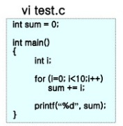 편집기(vi)를 열어서 파일(test.c)을 새로 만든다.