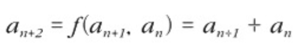 수열의 항이 이어지는 형태는 인접한 항들 사이의 관계식인 점화식을 사용해 간결하게 표현할 수 있다. 피보나치 수열의 점화식은 다음과 같다. (인접 3항간 점화식)