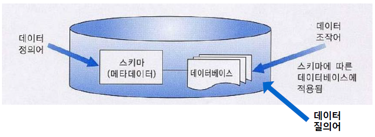 - 데이터베이스는 한 조직체의 운영 데이터뿐만 아니라 그 데이터에 관한 설명(데이터베이스 스키마 또는 메타데이터)까지 포함한다.