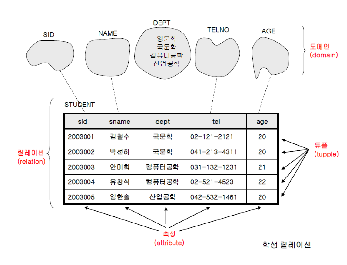- STUDENT 릴레이션 : 학생에 관한 정보를 저장