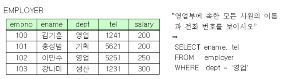 - 데이터 질의어 : SELECT